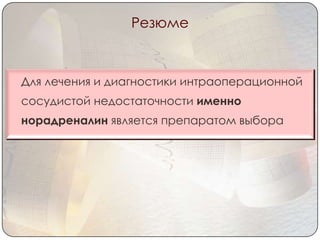 Норадреналин - лекарственное средство, применяемое для быстрого восстановления артериального давления . Заболевания