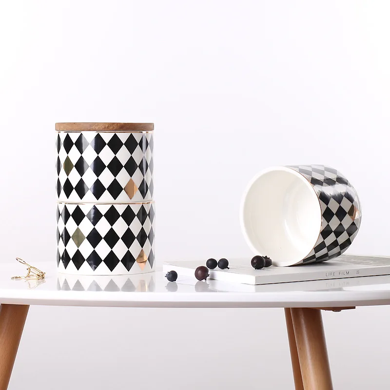 wTBECNCtHere you can buy Nordic Creative Geometric Pattern Three-layer Ceramic Sealed Jar Coarse Grain Coffee Tea Storage Jar with free delivery to your post office.