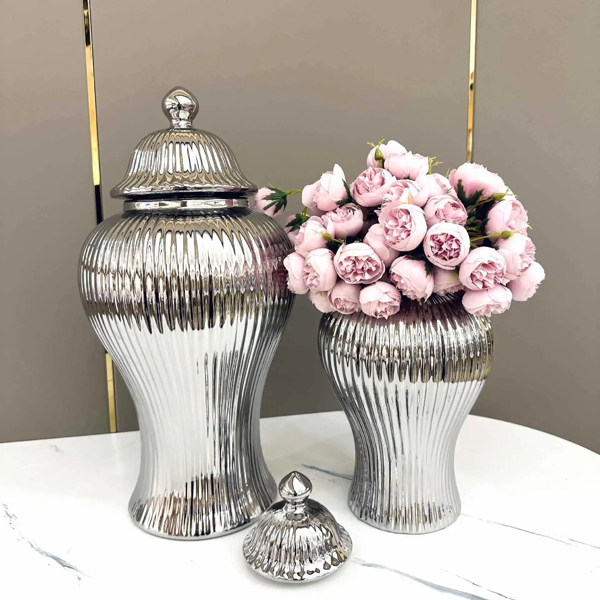 sNnFEknjHere you can buy Nordic Flower Vase Ceramic Electroplating Storage Tank with Lid General Can Decoration Desktop Container Storage Jar Large Vase with free delivery to your post office.