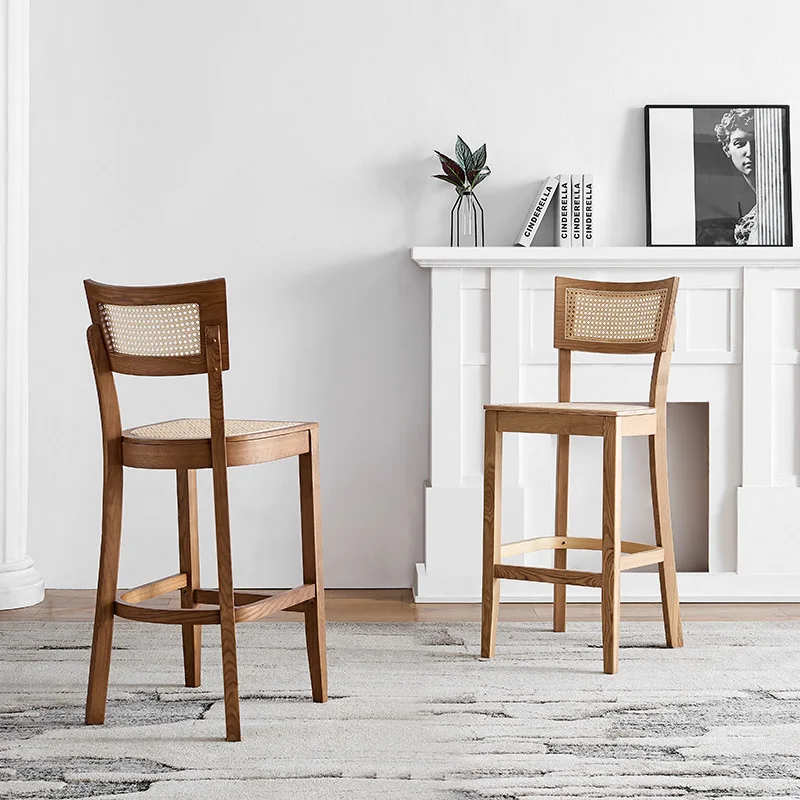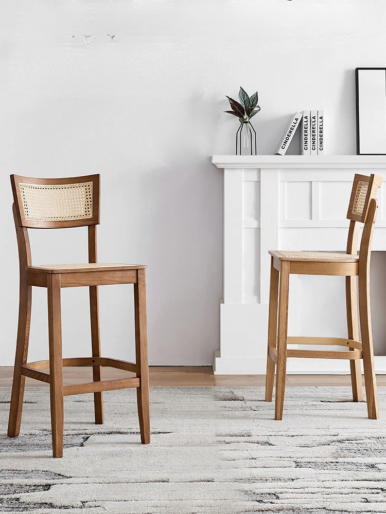 BxdCzisGVHere you can buy Nordic Rattan Woven Sitting Surface High Stools Solid Wood Bar Stools for Kitchen Restaurant Bar Chairs Front Desk Counter Stool with free delivery to your post office.