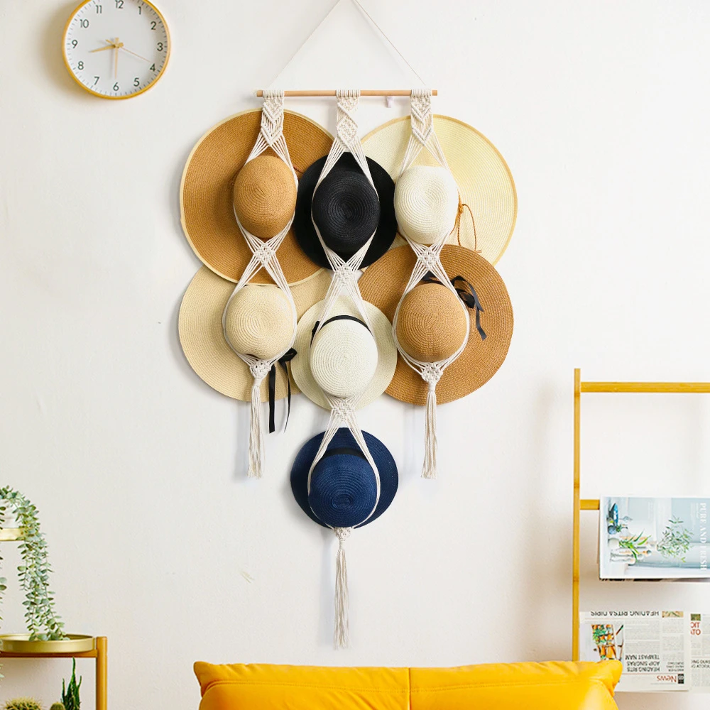 Nordic Style Boho Hand Made Hanging Hat Organizer Display Rack Storage Cap Holder Scarf Hanger Macrame Tapestry Wall Decor - Купить с бесплатной доставкой