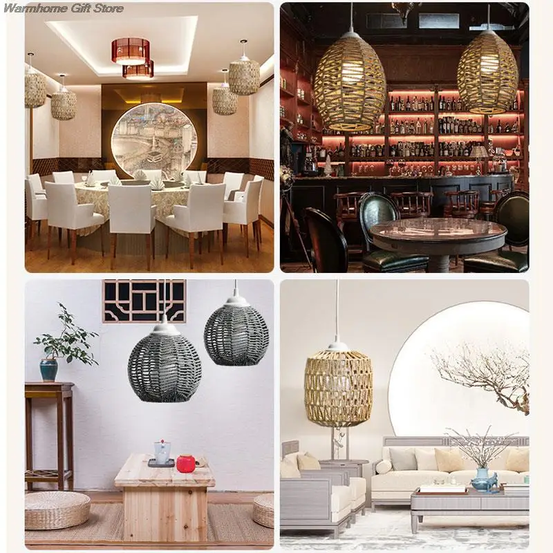 Nordic Style Imitation Rattan Lampshade Chandelier Homestay Restaurant Home DIY Decor Handmade Woven Paper Rattan Lamp Cover - Купить с бесплатной доставкой