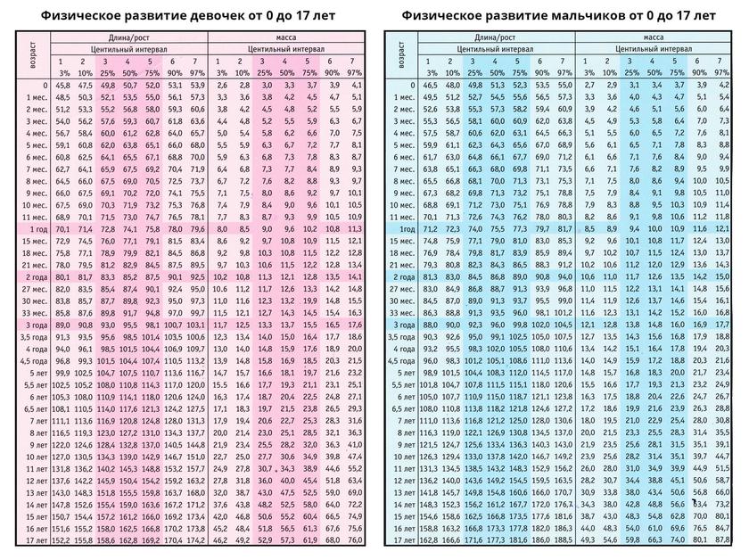 Нормы роста подростки девочки