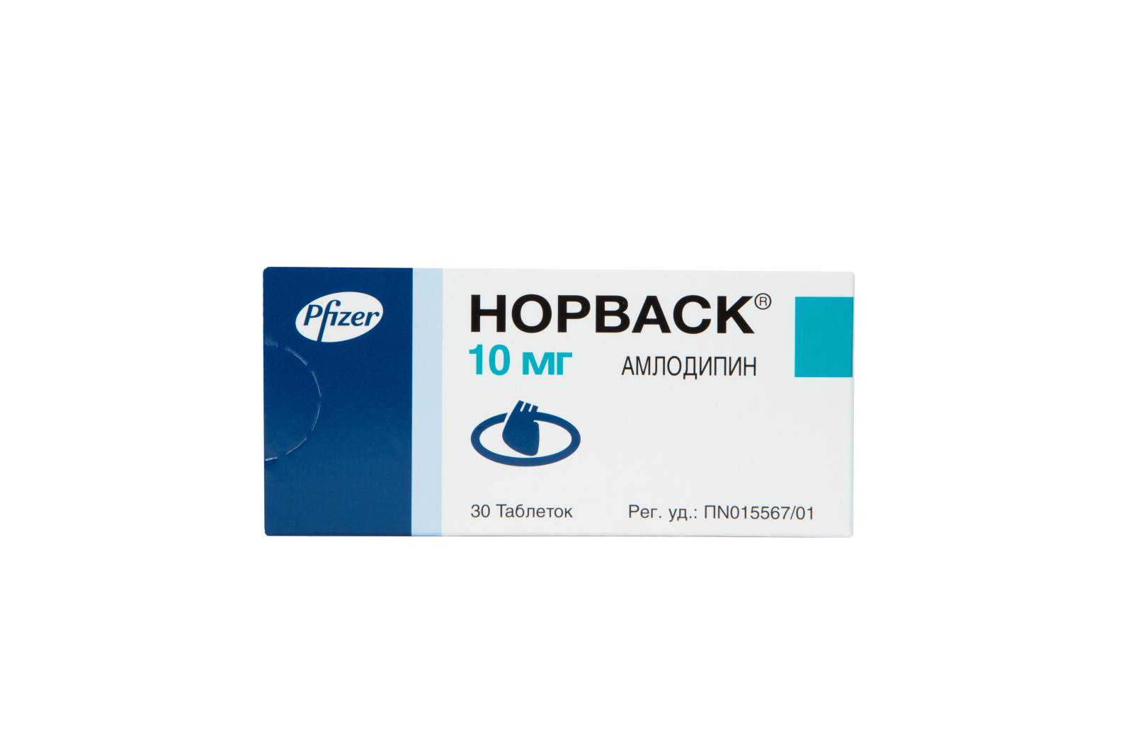 Норваск ®, таблетки, 10 мг, №30 - 10 шт . - блистер (3) - пачка картонная Производитель: Р-Фарм Германия ГмбХ (Германия)