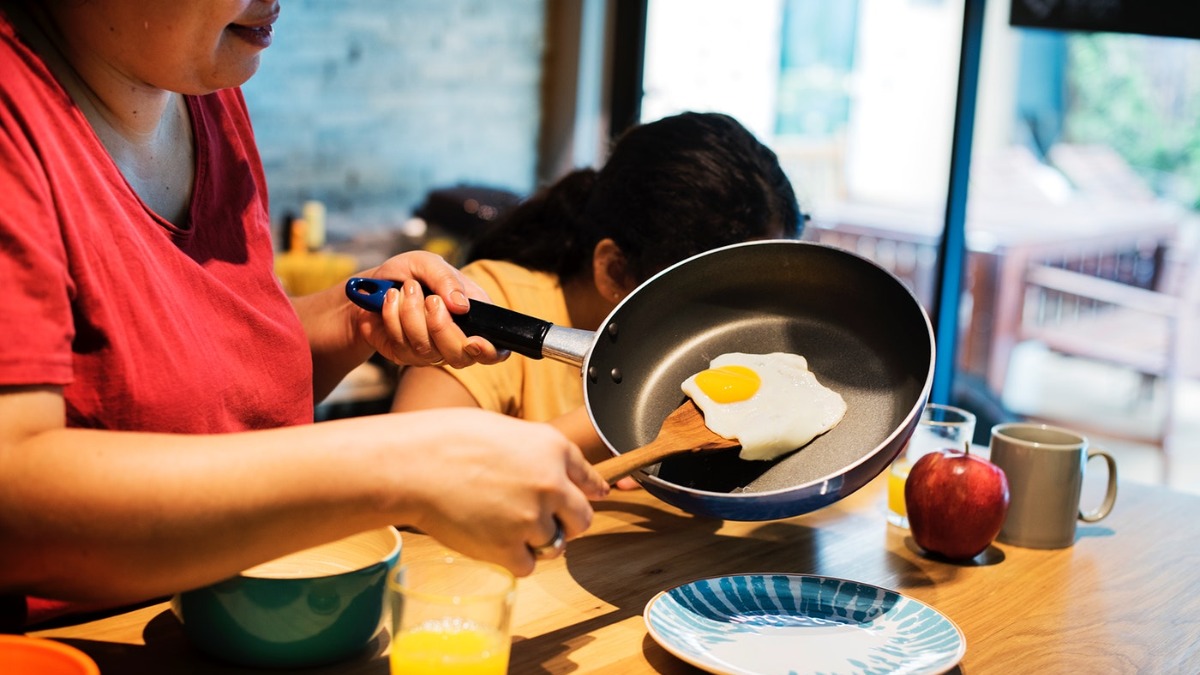 Not mom is getting ready for breakfast