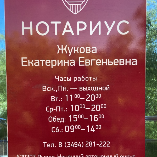 Нотариус Жукова Екатерина Евгеньевна ⭐ , 1/6, микрорайон Мирный, Новый Уренгой, Россия: фотографии, адрес и ☎️ телефон, часы работы, фото и отзывы посетителей на Яндекс .Картах .