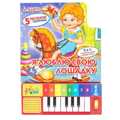 Votre bébé hésite encore à parler, mais essaie déjà de chanter ? Alors ces merveilleux livres de piano sont faits spécialement pour lui. Cinq chansons préférées ne laisseront pas indifférent votre petit agité. Le livre pour piano « I Love My Horse », un recueil de poèmes de A. Barto, ravira votre bébé. Après tout, les livres contiennent non seulement les paroles du dessin animé, mais aussi les touches du clavier. Avec leur aide, vous pouvez jouer vous-même une mélodie ou écouter des chansons : « Horse » (paroles de A. Barto, musique de V. Parsaev), « Bull » (paroles de A. Barto, musique de G. Landman), « Bunny » (paroles de A. Barto, musique de V. Parsaev), « Boat » (paroles de A. Barto, musique de G. Landman), « Elephant » (paroles de A. Barto, musique de V. Parsaev). Le livre dispose de 3 modes : éteindre l'alimentation, jouer sur les touches (en utilisant les astuces sur les pages du livre), écouter la chanson. Il sera également intéressant pour le bébé de regarder les illustrations lumineuses et colorées sur les pages. Ici, il rencontrera tous les personnages de dessins animés, jouera avec eux et peut-être même chantera. Développe l'audition, la motricité, le sens du rythme, la mémoire, l'imagination.