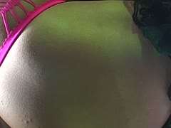 Am Pool gibt junge Negerin ein POV Blaskonzert