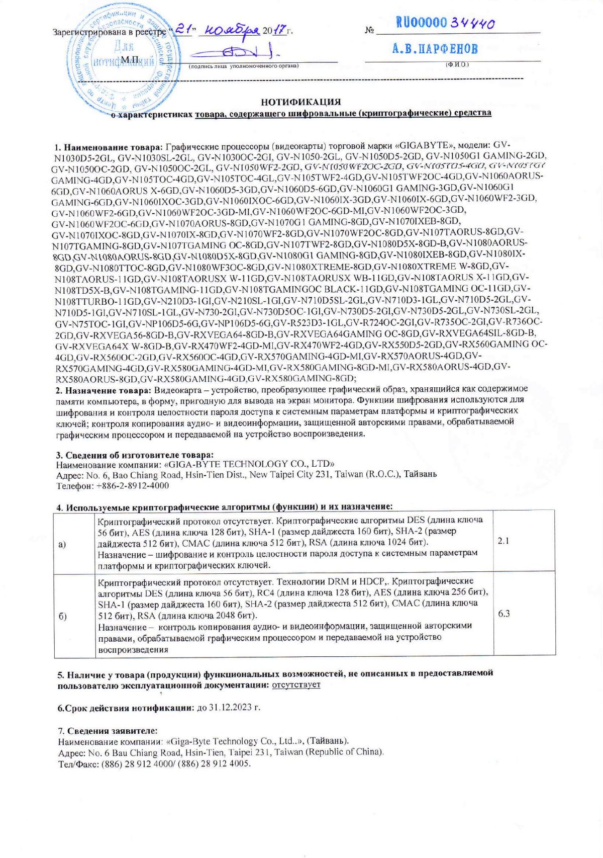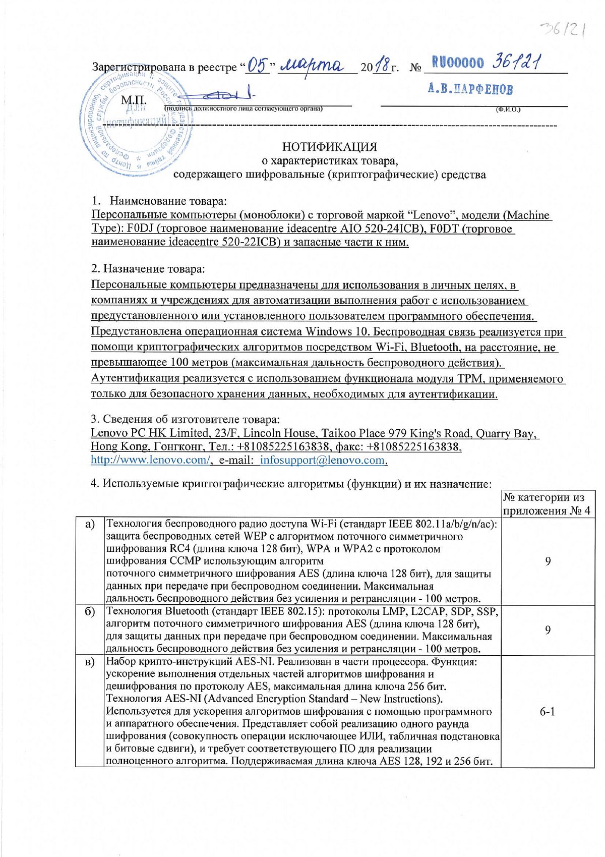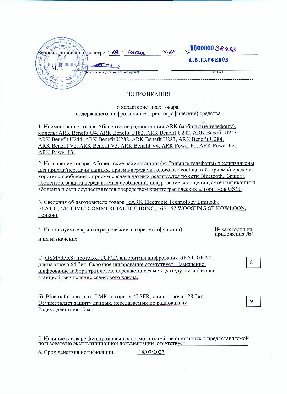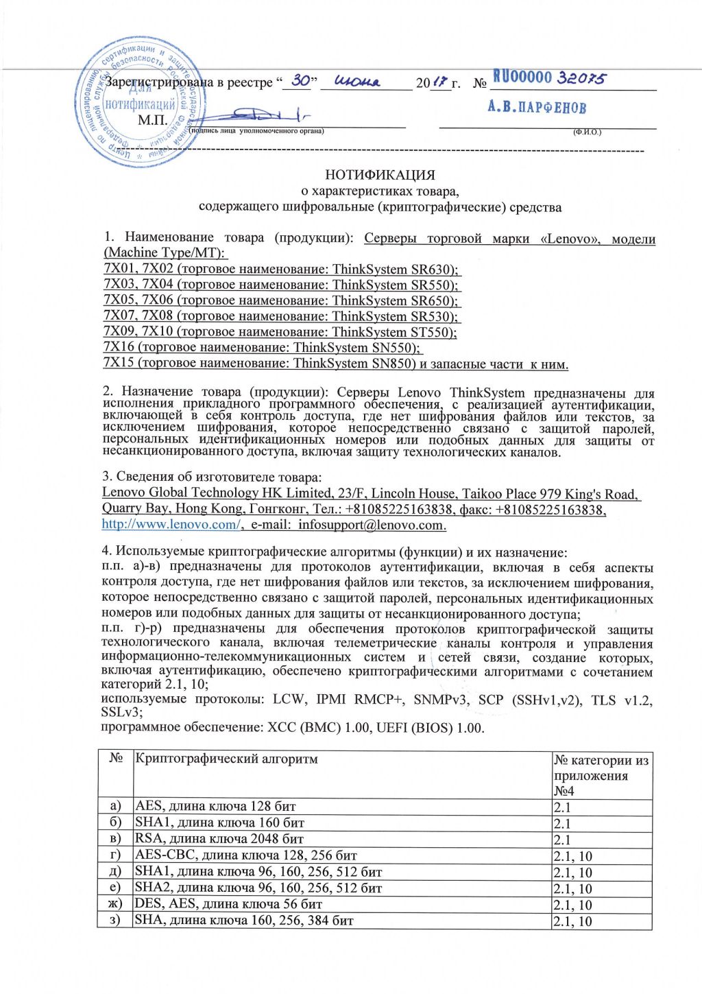 Нотификация криптографических средств