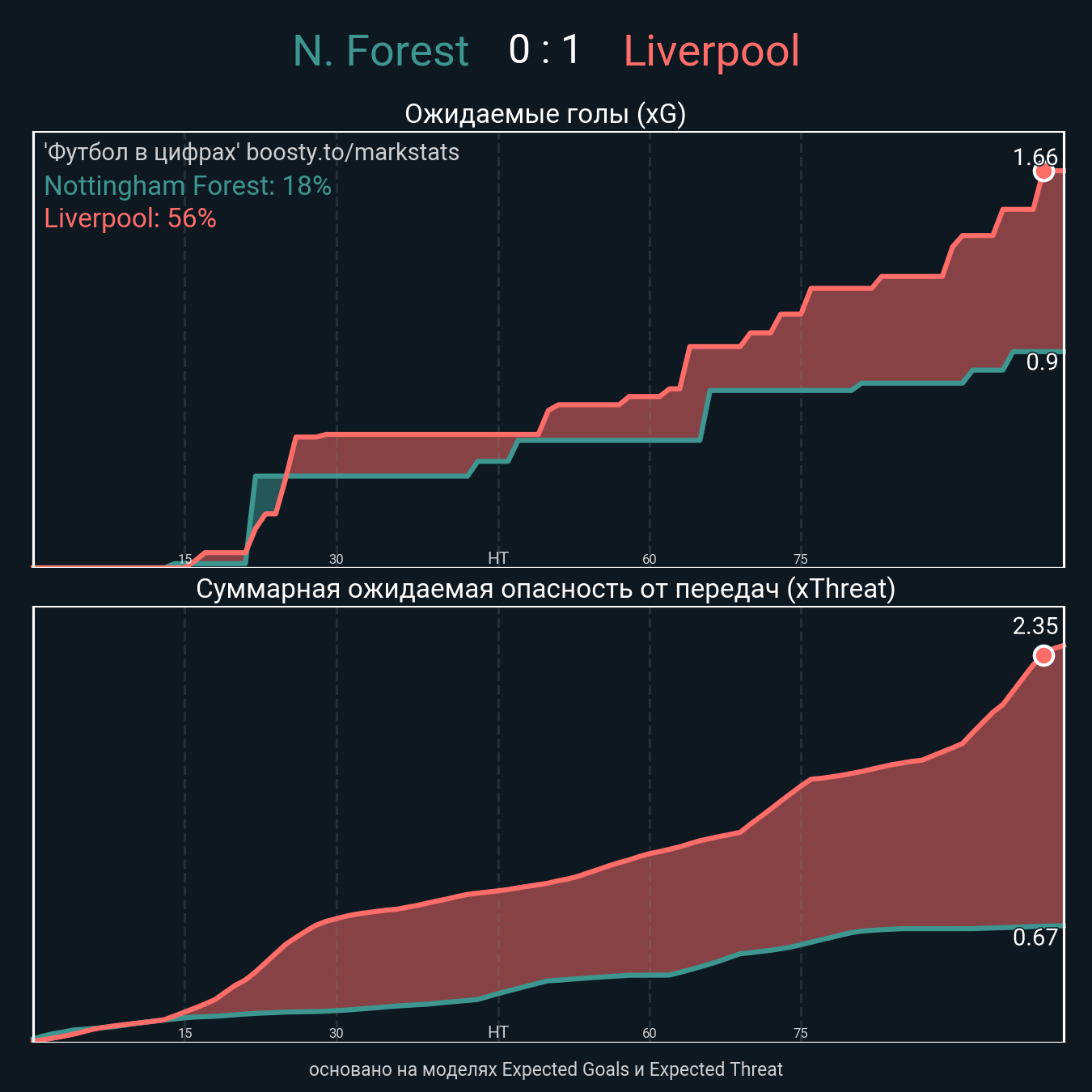 Ожидаемые голы (NPxG): 0.9 - 1.66
