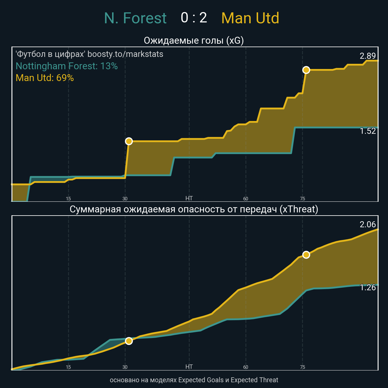 Ожидаемые голы (NPxG): 1.52 - 2.89