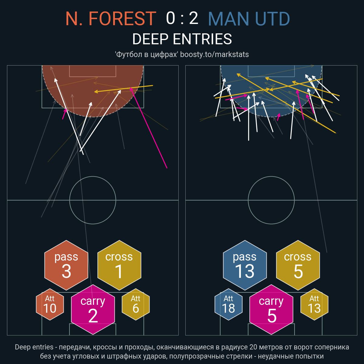 36 успешных передач из 45 попыток (1 под удар, 4 с продвижением, 4 на трети соперника)
