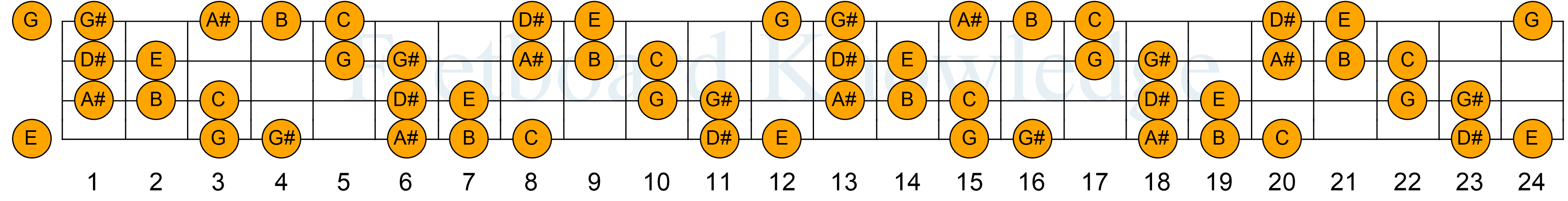 Ноты на грифе бас 4 струны