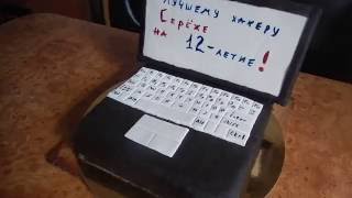 Торт "Ноутбук" мк . Ох девочки, намучилась я с ним . Весь такой косячный . Я торт ставила в коробку и опирала крышку на боковину коробки . Просила их до выставления на стол держать в таком положении или в холодильнике обпереть об стенку .