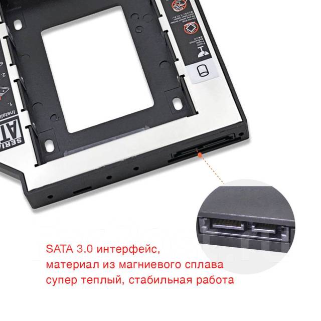 Универсальный переходник для установки второго диска в ноутбук вместо привода компакт дисков (2nd HDD Caddy 12 .7 мм 2 .5 SATA 3 .0)