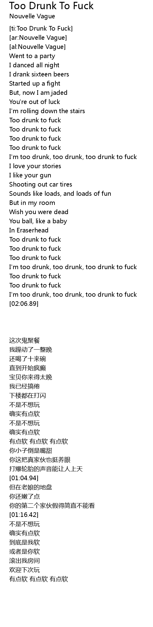 Nouvelle Vague Too Drunk To Fuck