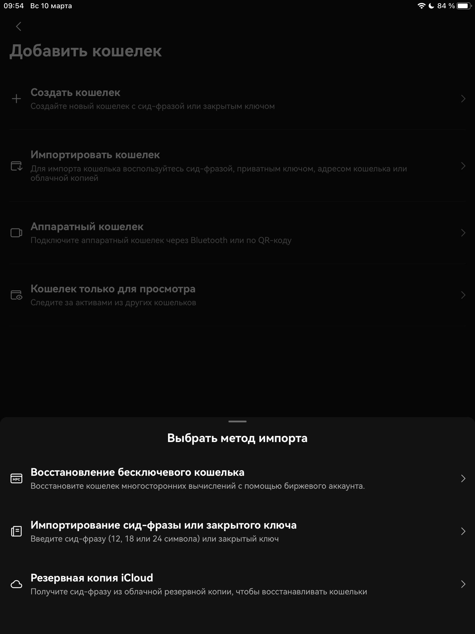 Выбираем добавить кошелек