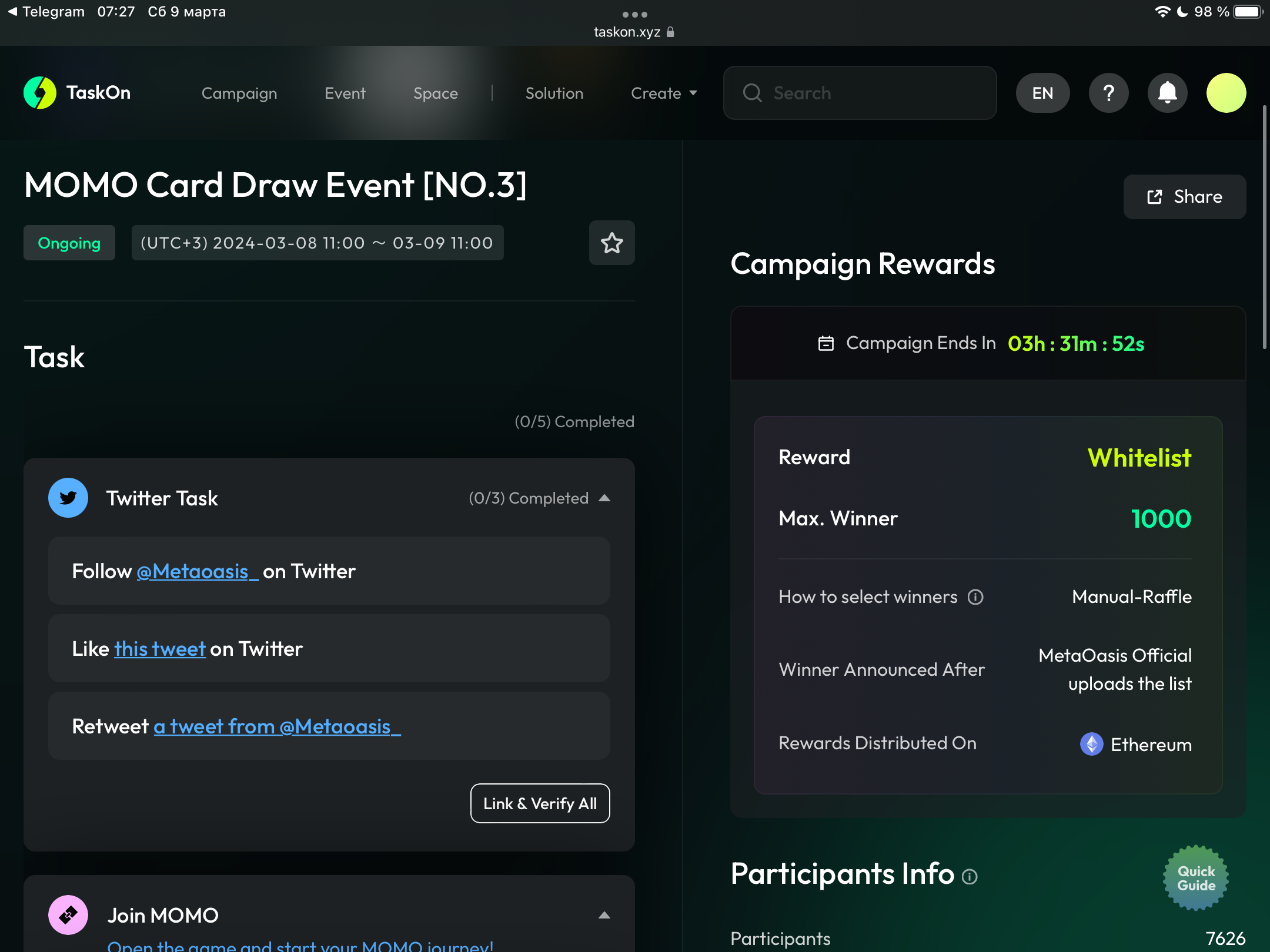 Подключаем Твиттер (Link&Verify All) и подтверждаем задания твитера