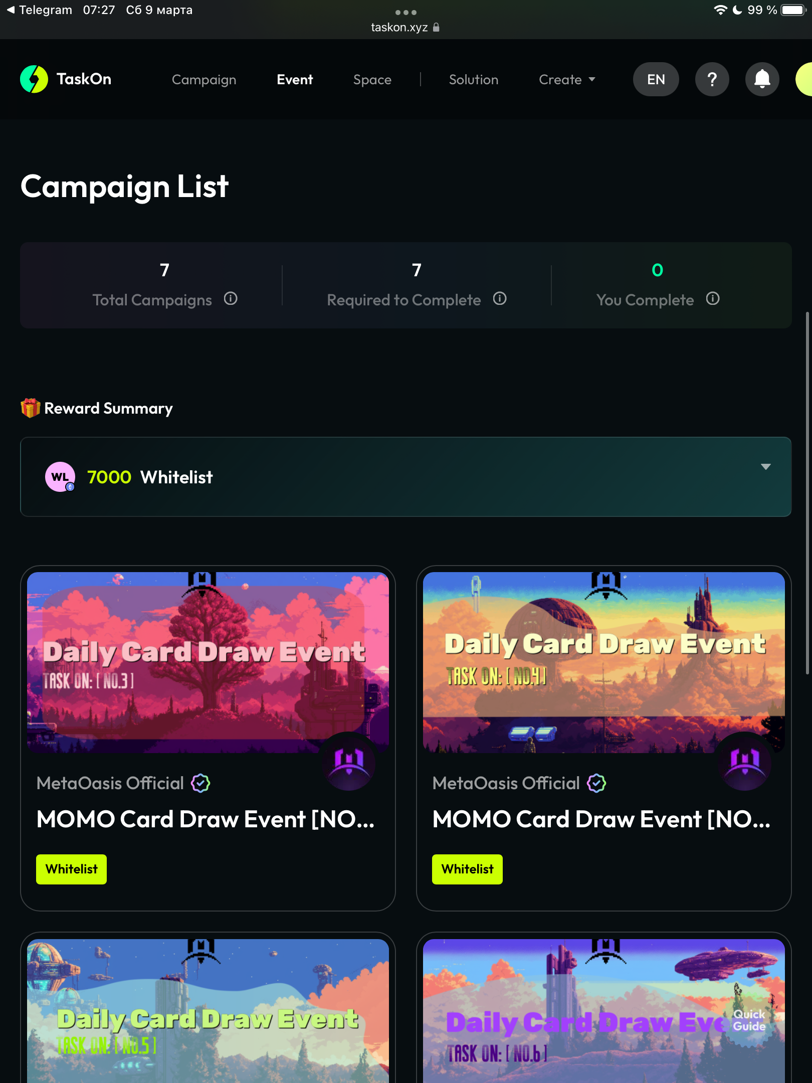 После входа листаем данный ивент чуть в низ и видим задания