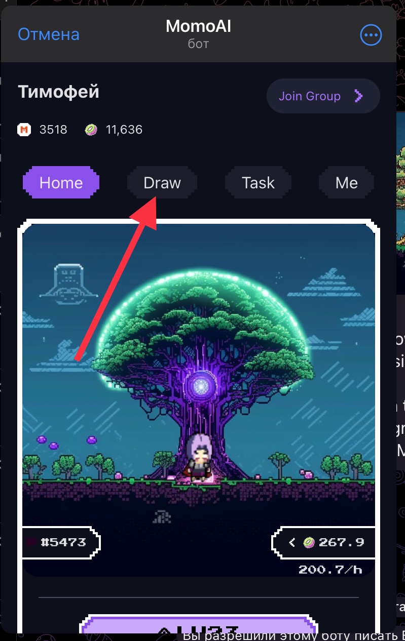 Draw - Заработок M для прокачки дерева, каждый день дают 1 шанс бесплатно.