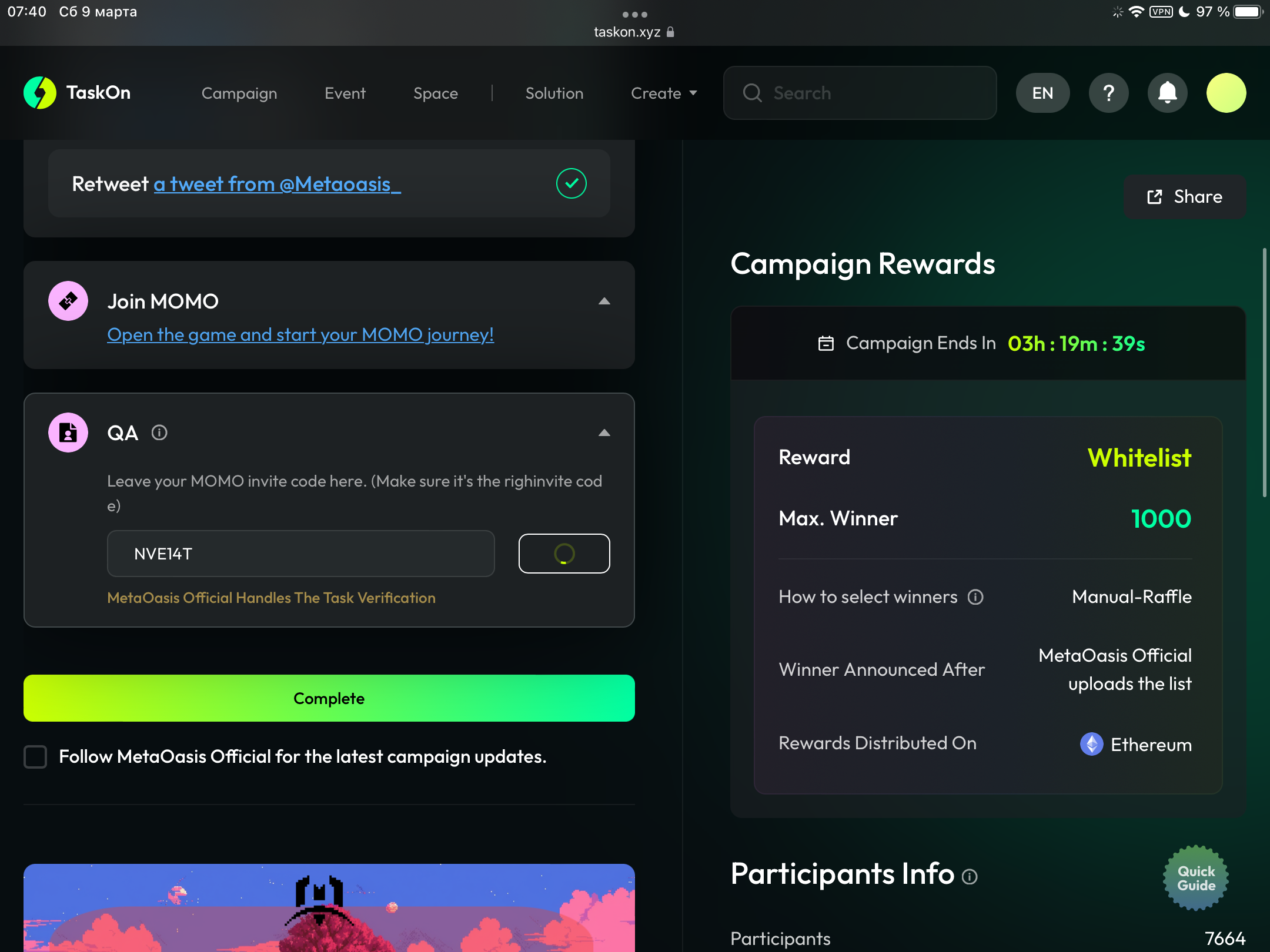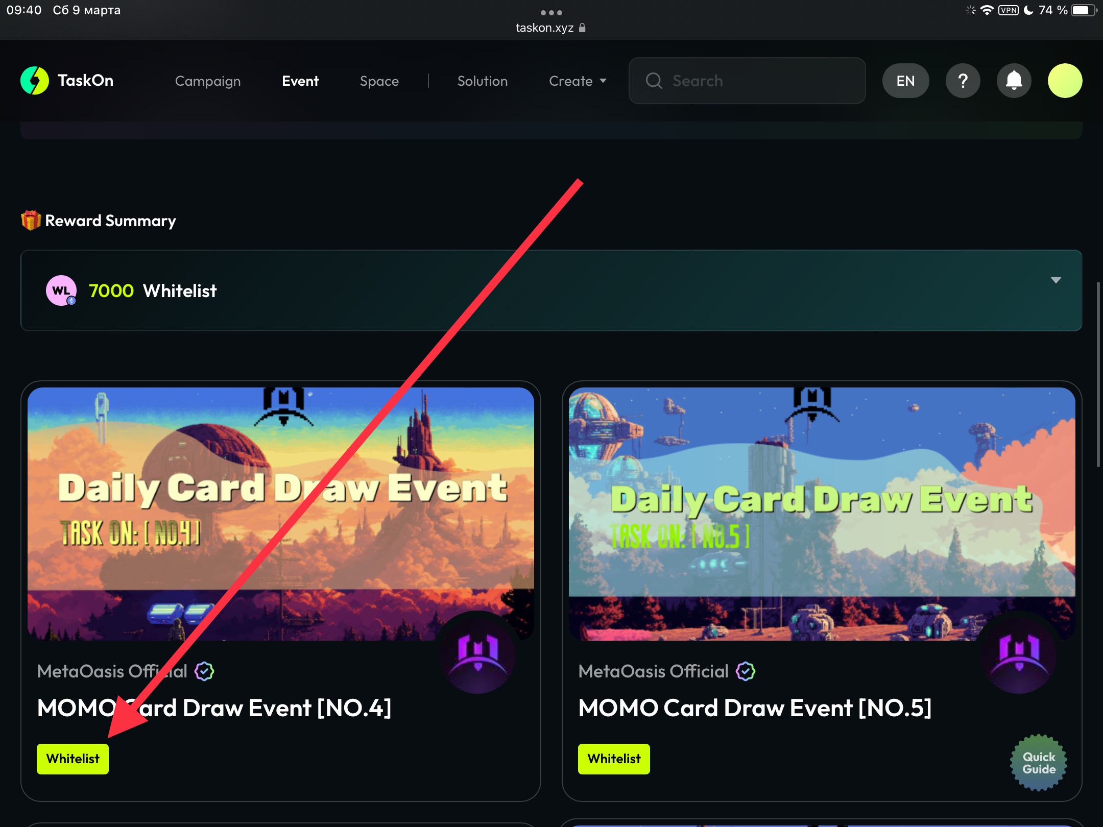 Заходите в доступное задание (Оно первое в списке) (Сейчас это ивент 4)