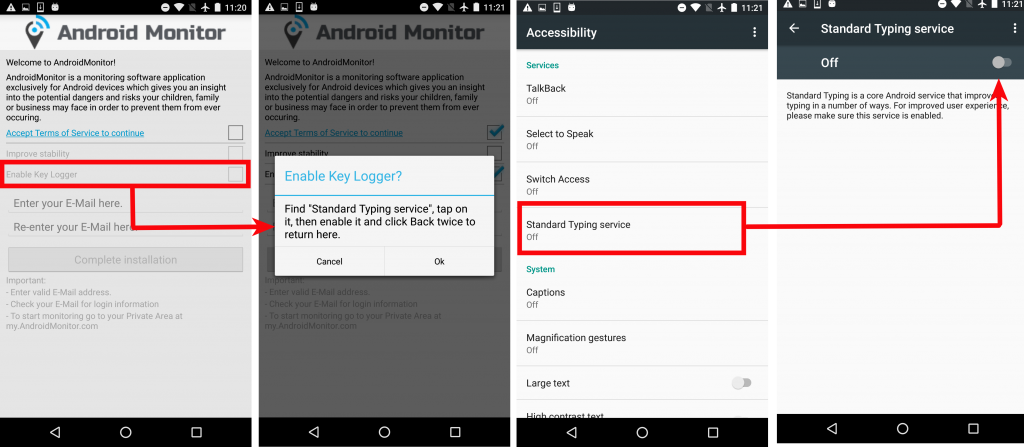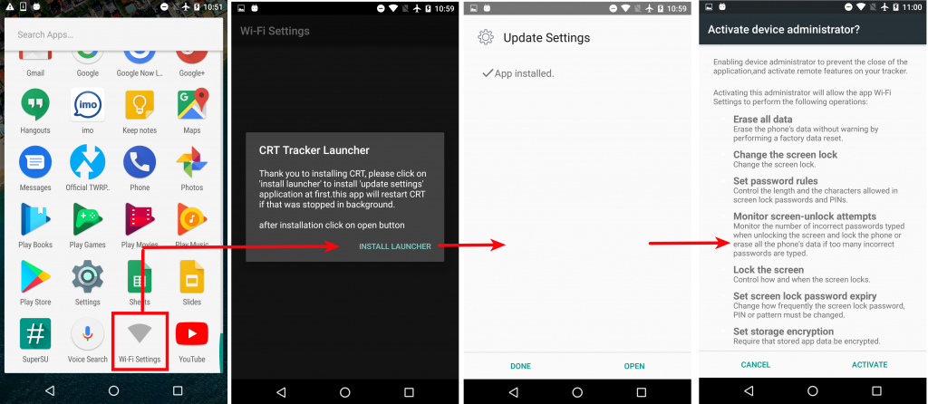 После установки шпионское приложение обычно получает доступ на уровне администратора, прячется, шпионит за жертвой и, наконец, отправляет украденные данные на свой сервер.