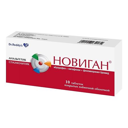 Новиган может усиливать действие алкоголя . Форма выпуска Таблетки по 200 штук в упаковке . 1 таблетка содержит бруфена 400 мг, р-пиперидин-этоксин-о-карбметокси-бензофенона гидрохлорида 5 мг, дифенил-пиперидинэтил-ацетамидбромометилата 0,1 мг . Обезболивающее Почечная колика Кишечная колика Печеночная колика Боли при месячных
