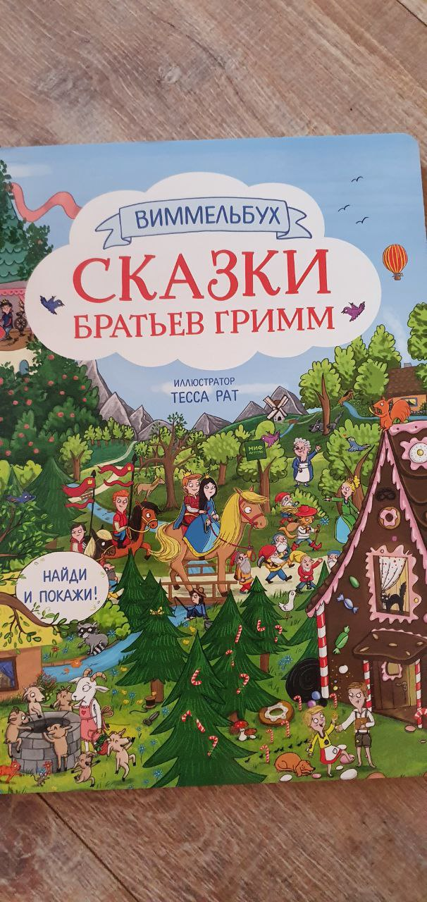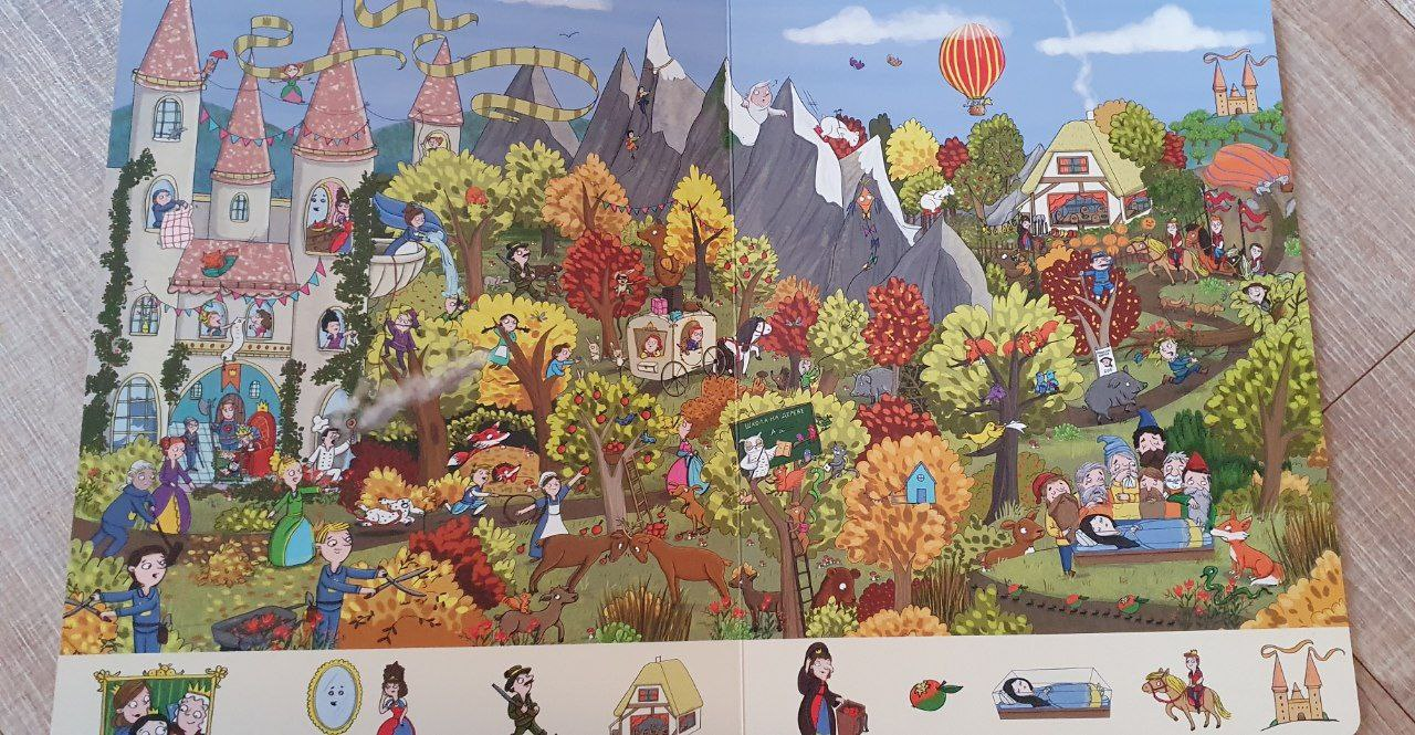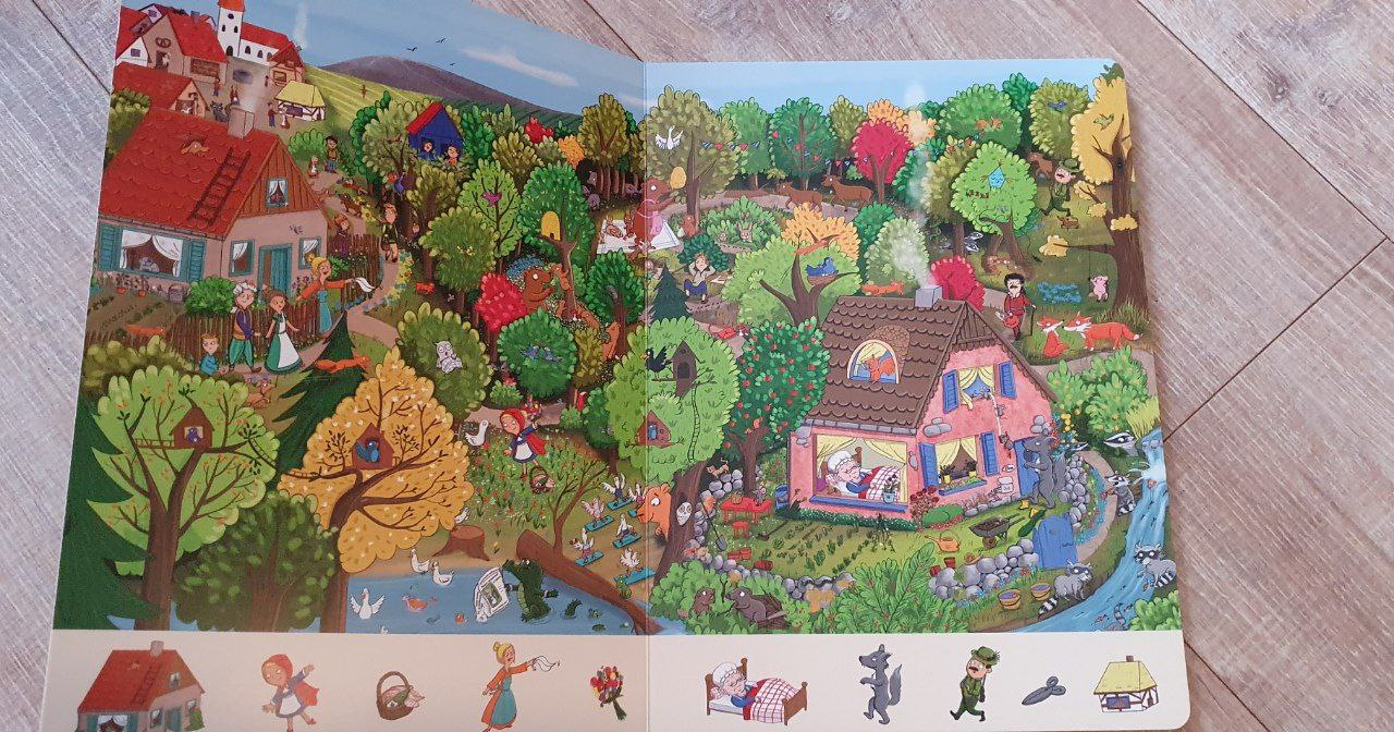 Виммельбух — это неограниченное поле для игр и воображения. В самой книге есть задания «Найди и покажи», но вы можете придумать свои игры. Например, вплести в сюжет дополнительных героев, придумать им истории (в книге есть забавные герои, предметы, которые не имеют прямого отношения к сказке).