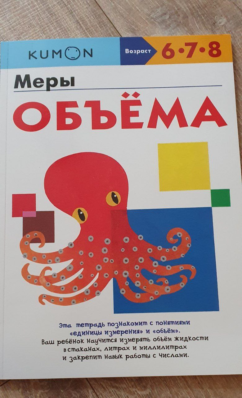 Рабочая тетрадь «Kumon. Меры объёма» познакомит ребенка с понятиями «объем» и «единицы измерения».