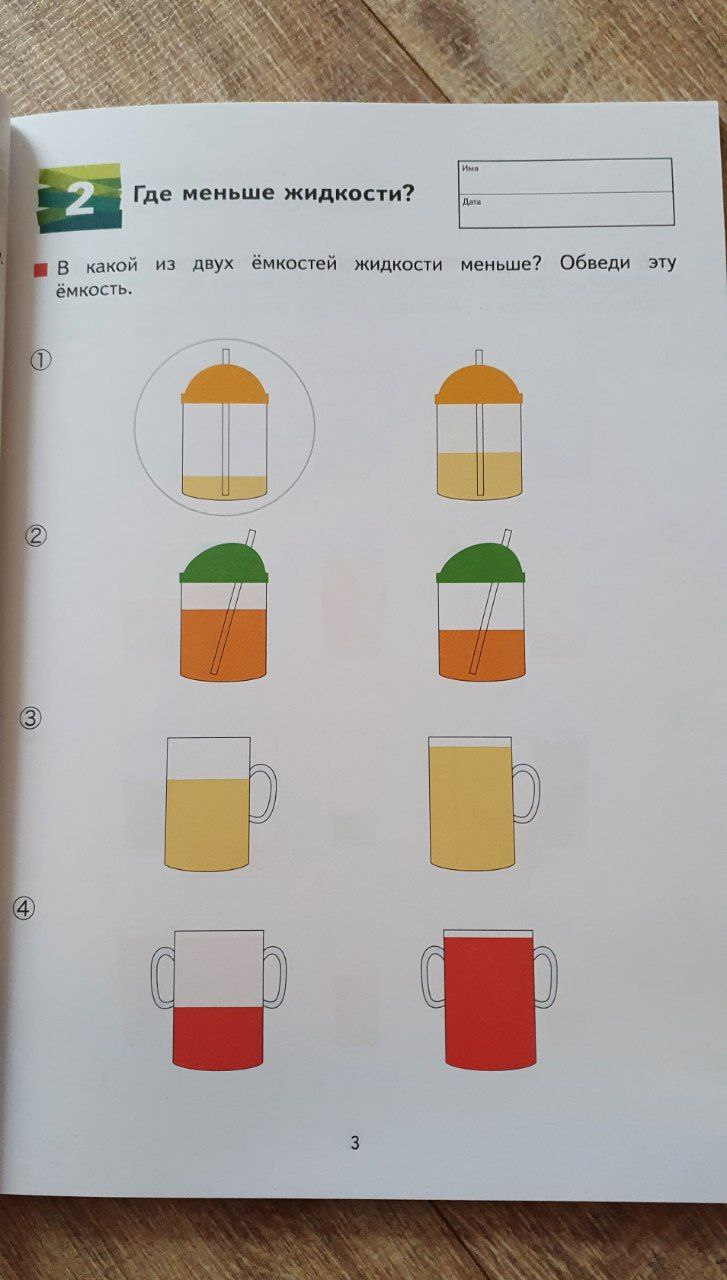 — потренируется определять, какой объем жидкости в ряду наибольший и какой наименьший;