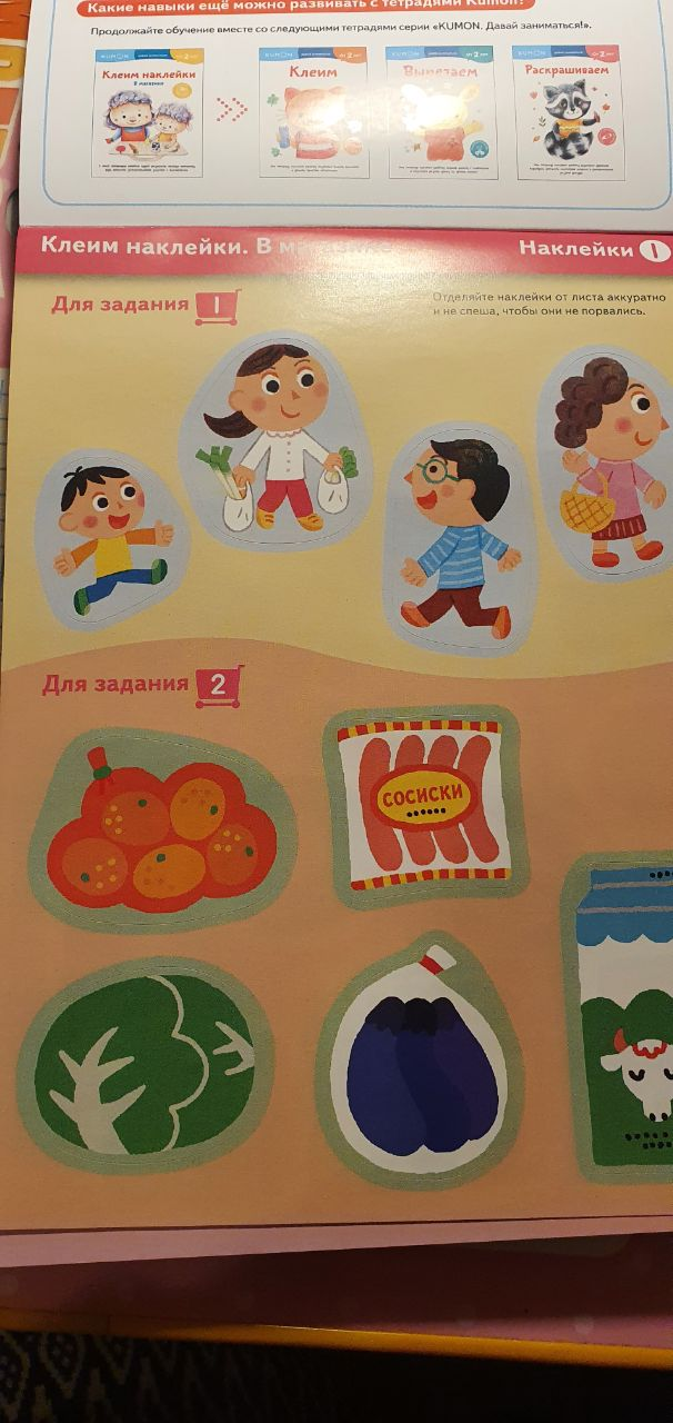 Kumon. Клеим наклейки. В магазине
