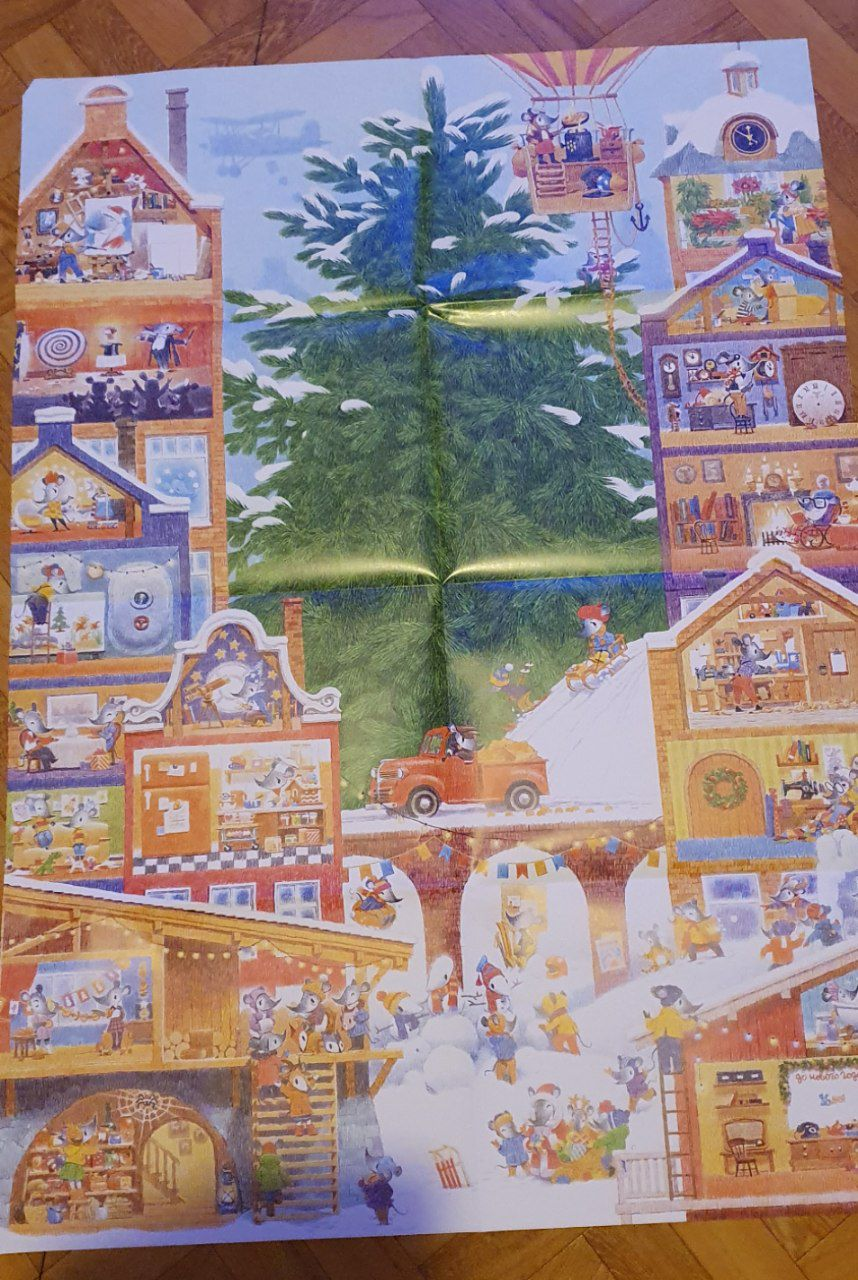 Этот милый календарь-плакат украсит две недели ожидания Нового года. Однажды в декабре Мышонок пришел к маме, которая вязала шапку, и сказал: «Давай в этом году нарядим елку во дворе старинными елочными игрушками». «Отличная идея! — воскликнула мама. — У нас как раз есть такая игрушка: я храню ее с тех пор, как сама была маленькой. А ты обязательно загляни к бабушке и другим нашим родственникам. Наверняка у них тоже остались с детства елочные украшения, про которые они расскажут что-то интересное».