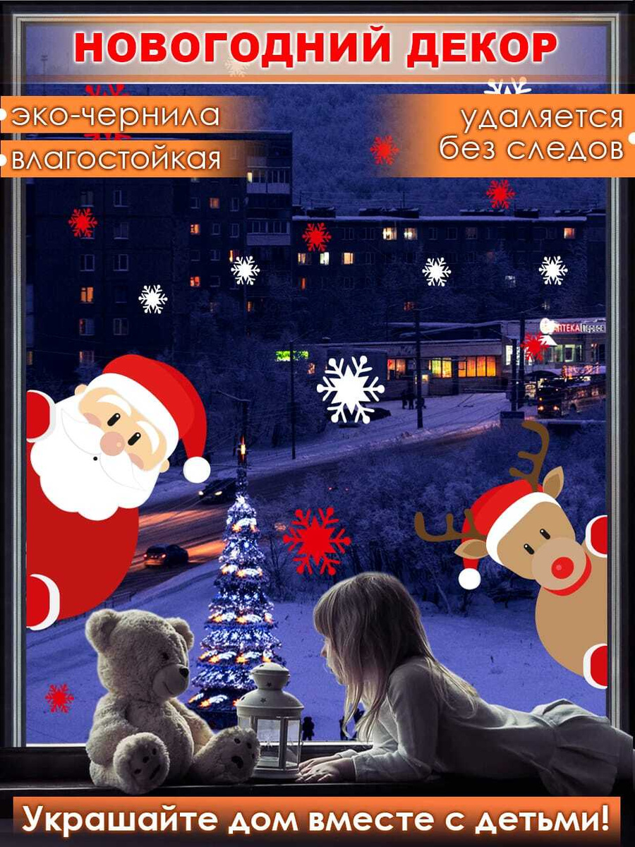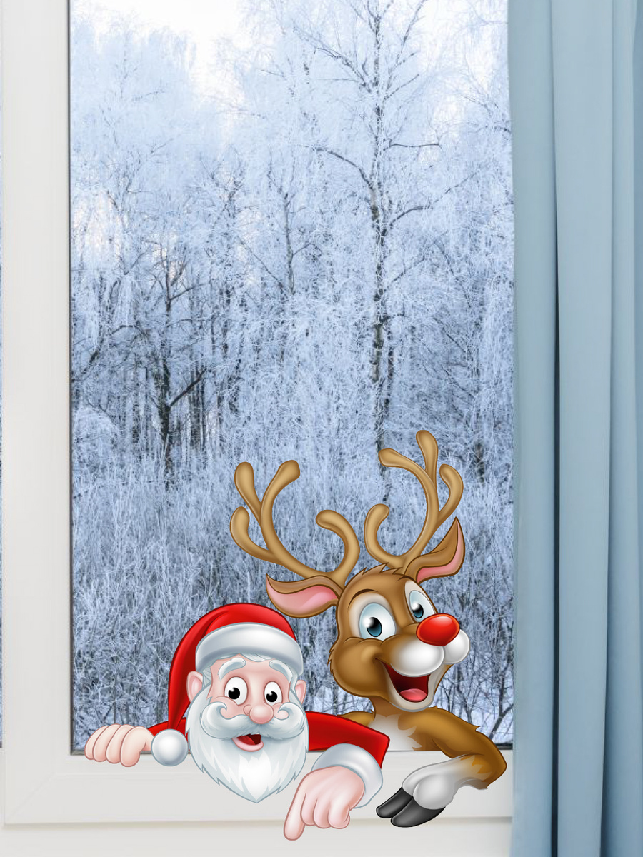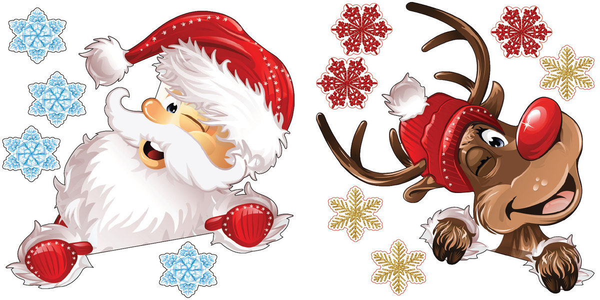 Представляем вашему вниманию подборку новогодних картинок на окна . Композиция из новогодних деталей . Украшение в виде единой картины . Домики и елочки . Счастливый олень . Снеговик у елки . Дед Мороз и Снегурочка . Веселая компания . Вензеля, снежинки .