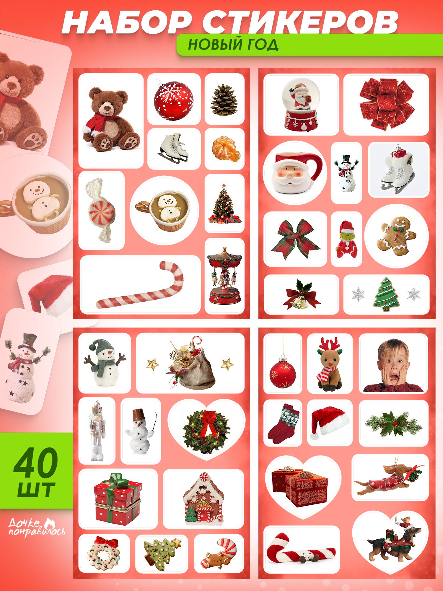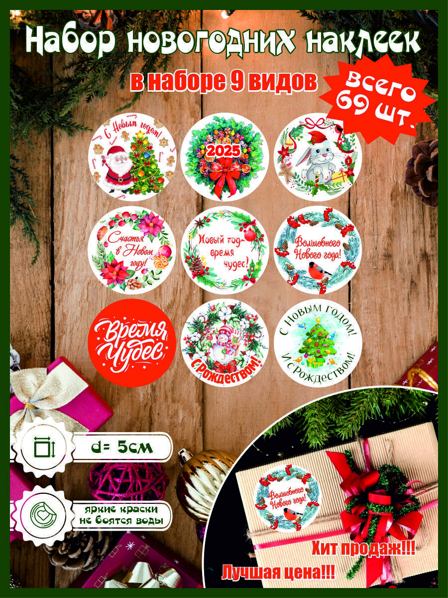 Новогодний набор наклеек 57 фото