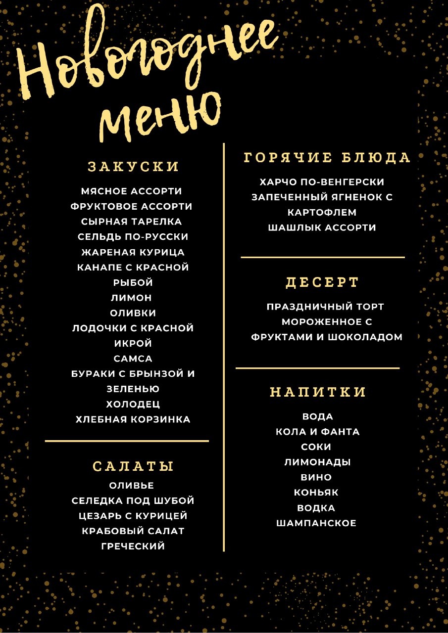 Мы тщательно продумали и подготовили всё заранее. Вас ждёт незабываемый новогодний вечер с насыщенной шоу-программой и праздничным банкетом, а также всевозможный спектр развлечений: бассейн, сауна, караоке-зал, фото-зона, игровая и детская комнаты. На протяжении отдыха для вас будут работать аниматоры и ди-джей, а также проводиться увлекательные конкурсы и флешмобы.