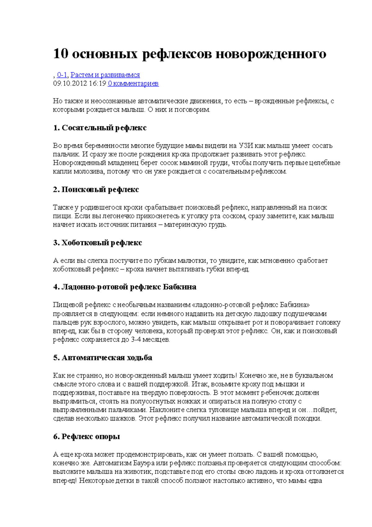 Новорожденный без рефлексов