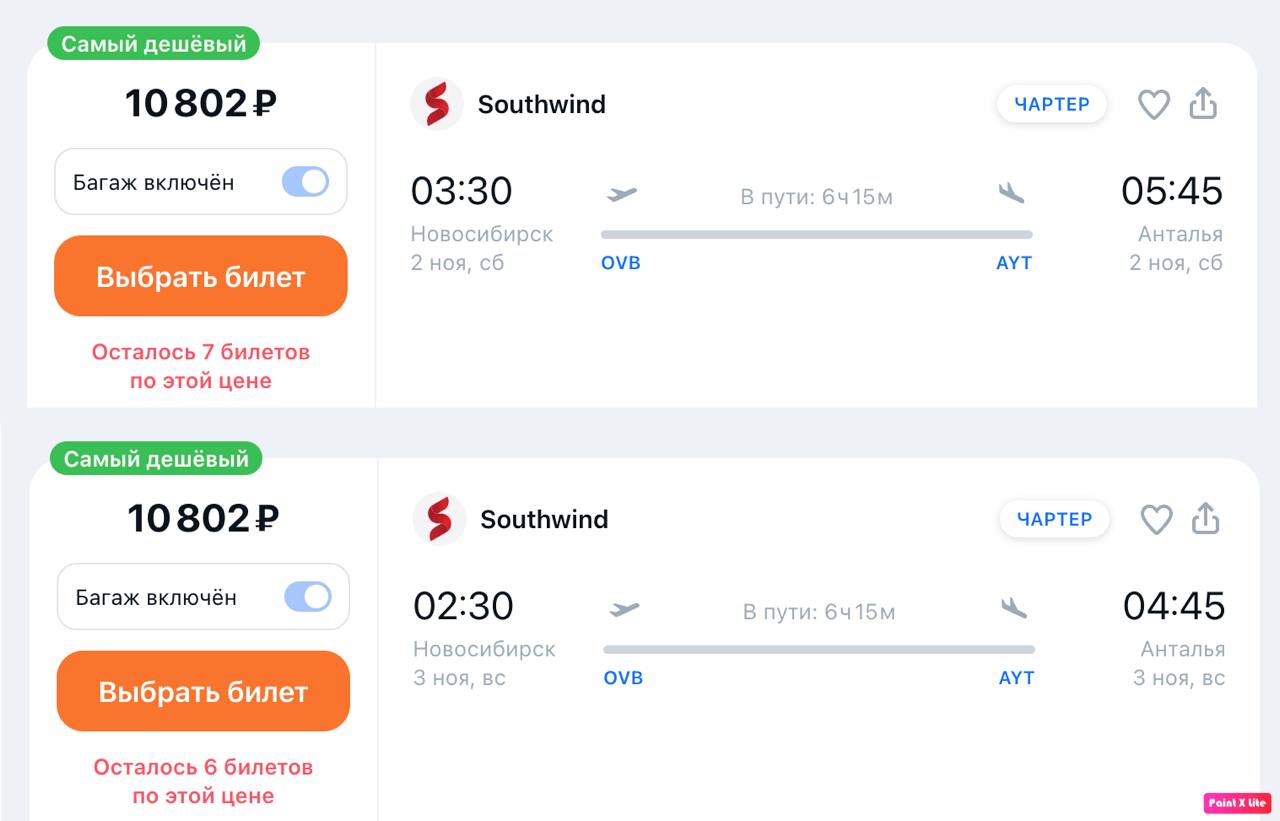 Новосибирск анталья прямой