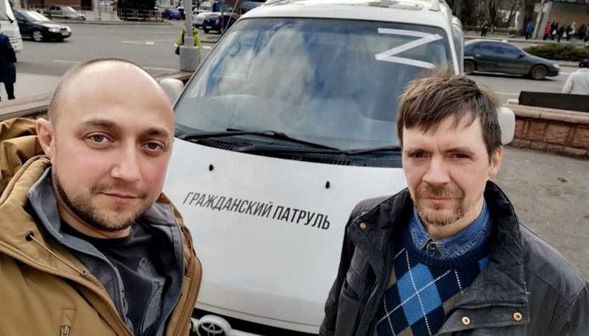 Ростислав заключил договор с общественным движением "Донецкая Республика". Это волонтёры, которые открывают пункты приёма помощи на освобождённых территориях. Разок Ростислава и Алексея проверили на блокпосте, а дальше — уже встречали по-товарищески.