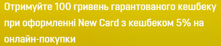 100 грн — приветственный подарок от UKRSIBBANK за оформление карты New Card с кэшбеком 5% на онлайн-покупки.