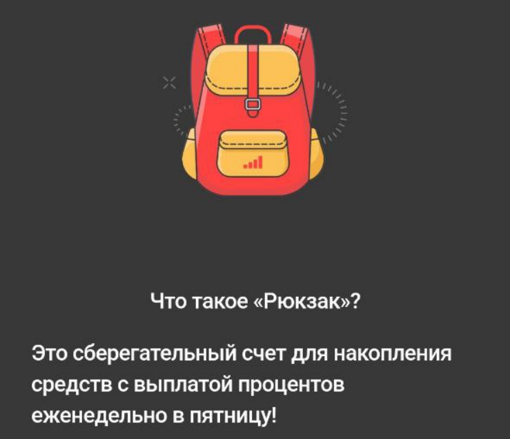 Выплата процентов происходит еженедельно в пятницу, проценты добавляются в Рюкзак.