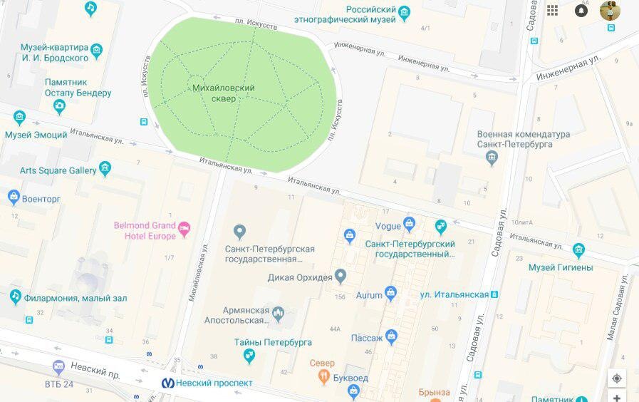 Место: м. Невский проспект, Михайловский сквер.