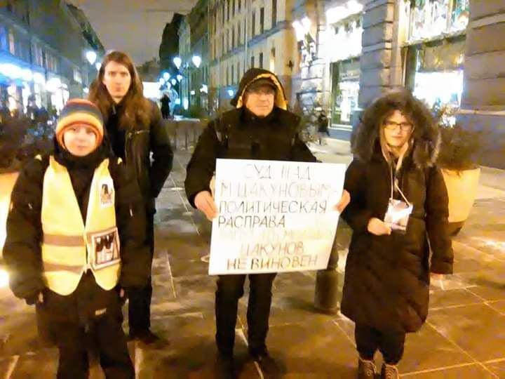 Участники Бессрочного протеста провели пикет на Малой Садовой в поддержку Михаила Цакунова.