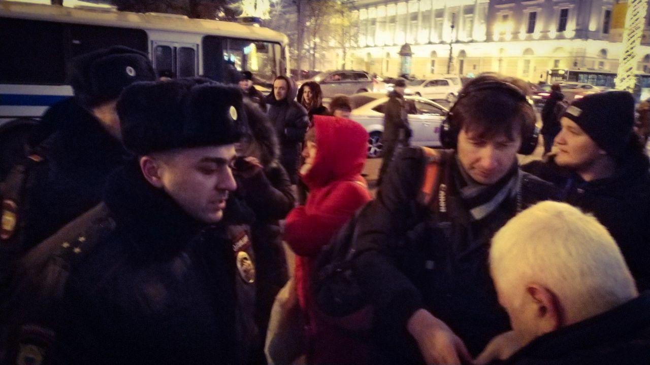 В центре Петербурга полицейские задержали Ольгу Смирнову и Асана Мумджи, которые стояли с одиночными пикетами в поддержку крымских татар.