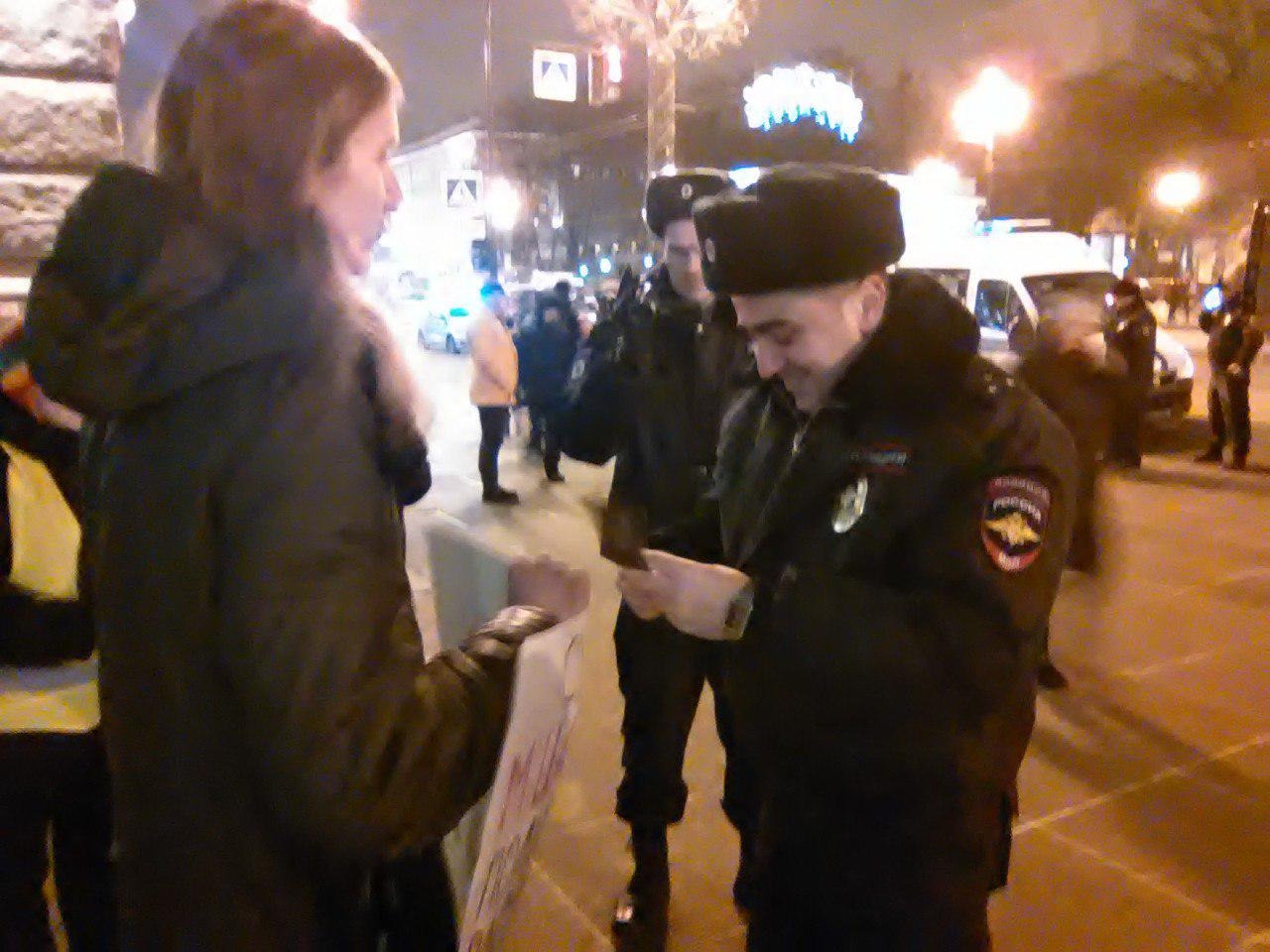 Заботливая проверка документов у Ильи Ткаченко на пикете в защиту Цакунова: