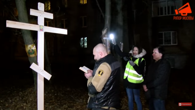 Жители района провели молитву у креста, что подтверждает видео YouTube-канала «Рупор Москвы».
