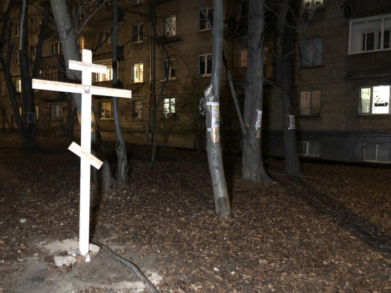 Полиция задержала активиста, установившего православный крест у сквера на месте предполагаемой застройки.