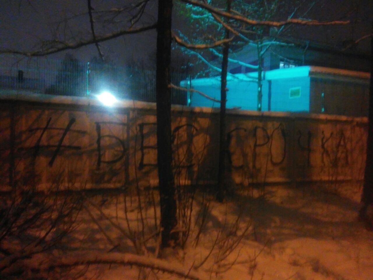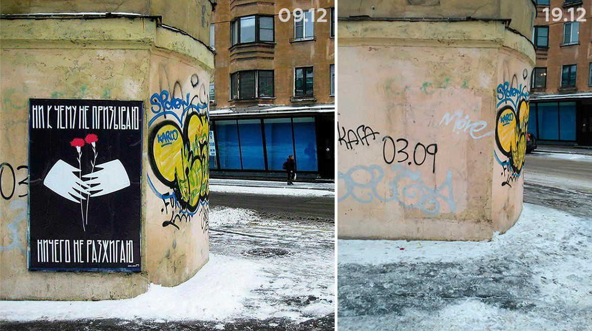 Фото расклеенных листовок, граффити, повешенных плакатов и тд: