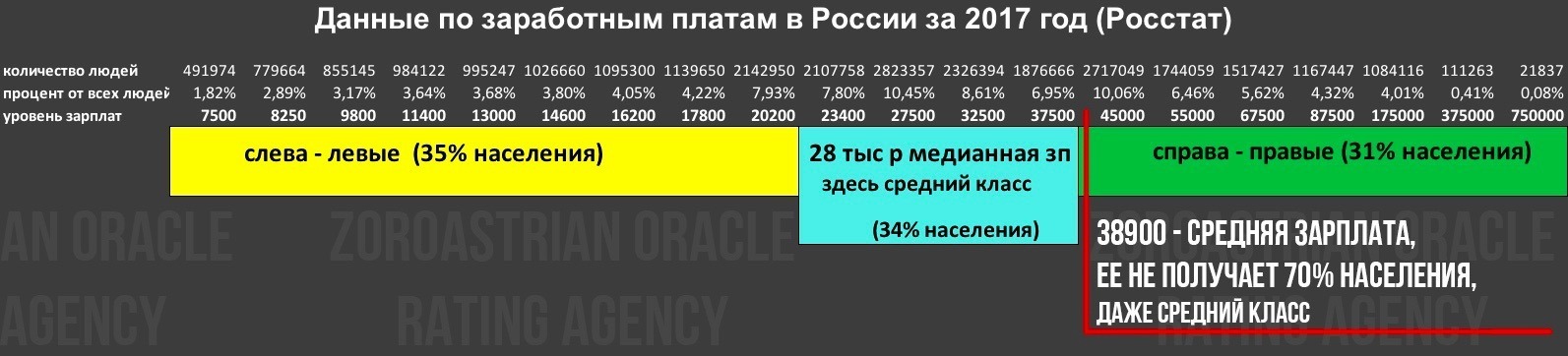 Итак Володя Путин постоянно говорит о росте средней зарплаты, но по факту как оказалось большинство ее и не получает, так как доходы населения распределены неравномерно по данным Росстата средняя зарплата в апреле 2017 составила 38900 рублей (за 2018 еще нет данных на сайте но там те же соотношения)