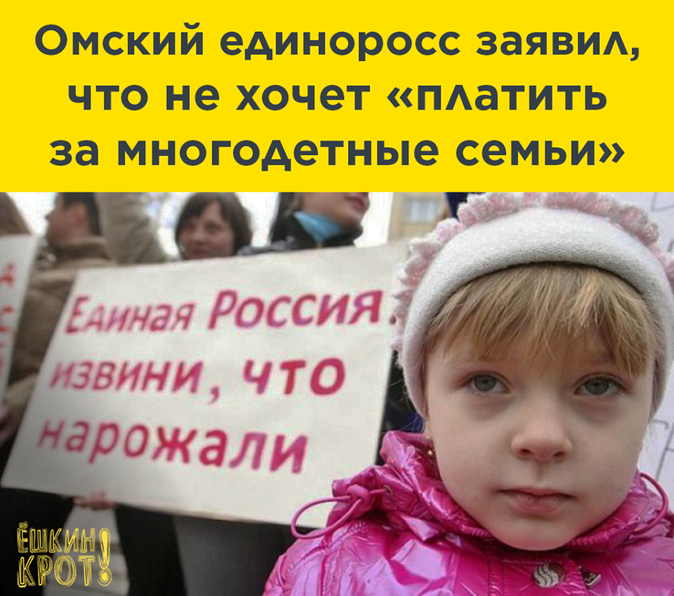 Депутат Омского горсовета, единоросс Алексей Провозин заявил, что не намерен платить за многодетные семьи, которые бесплатно получают от государства землю: «Я лично не хочу платить за многодетные семьи. Пусть федеральный бюджет и выделяет на них деньги».