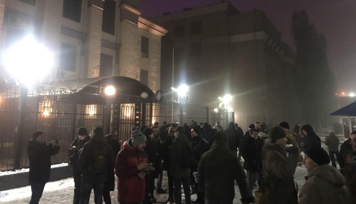 Под российским посольством в Киеве всё больше людей.